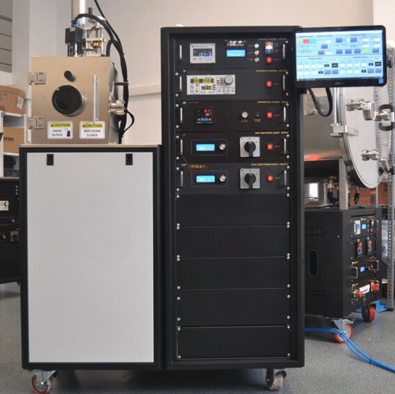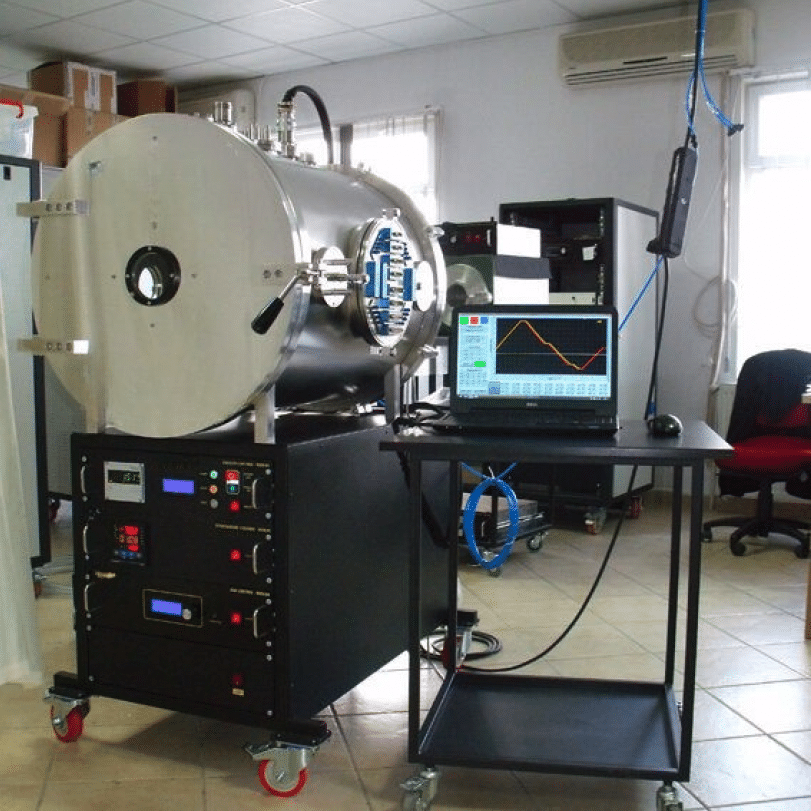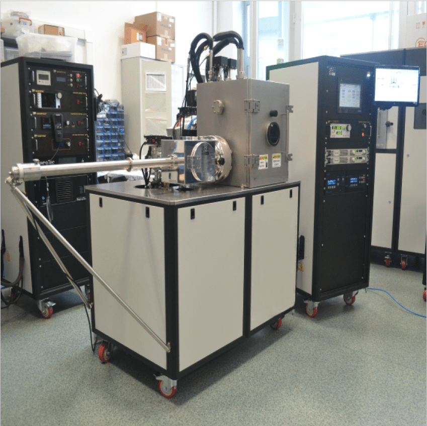 HIPIMS systems are based on high energy pulsed DC magnetron technology. In this method, 500-1000 VDC short duration pulses are sent to targets with 100-500 A/cm2 currents to generate very high ionization plasma density. Consequently, very dense, well-adhered, high-quality films can be obtained. Oxide and nitride films can also be made by HIPIMS reactive sputtering using metallic targets. The substrate holder can be biased to DC pulsed voltage with high accuracy synchronization to the target pulse. These systems can have up to 4 sputtering sources. Therefore, up to 4 multi-layered materials can be produced including nanosized metallic oxide, fluoride or nitride films.
